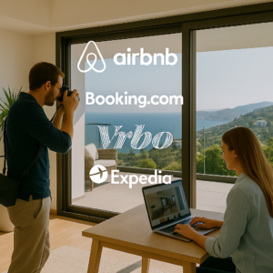 Hacemos que tu propiedad destaque en las principales plataformas de alquiler vacacional. Desde la redacción del anuncio hasta las fotos y traducciones, preparamos todo para que tu alojamiento sea atractivo, visible y competitivo en Booking, Airbnb, Vrbo y más.